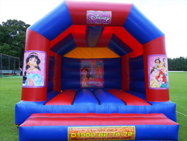 Disney Princesses Bouncy Castle available in 15 ft x 12 ft available in Pink & Purple or Red and Blue.